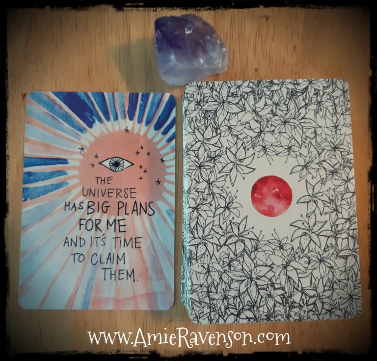 Neither of these decks are particularly great for oracle work, as they provide affirmations instead. I have used both as oracles, but that’s not really their strength. This deck would be great to draw a card whenever you’re feeling down, anxious, etc., to receive a nice affirmation from the universe. The art by Micaela Ezra backs this up too, as it’s colorful and evocative, and makes you feel calm and contemplative just to see it.