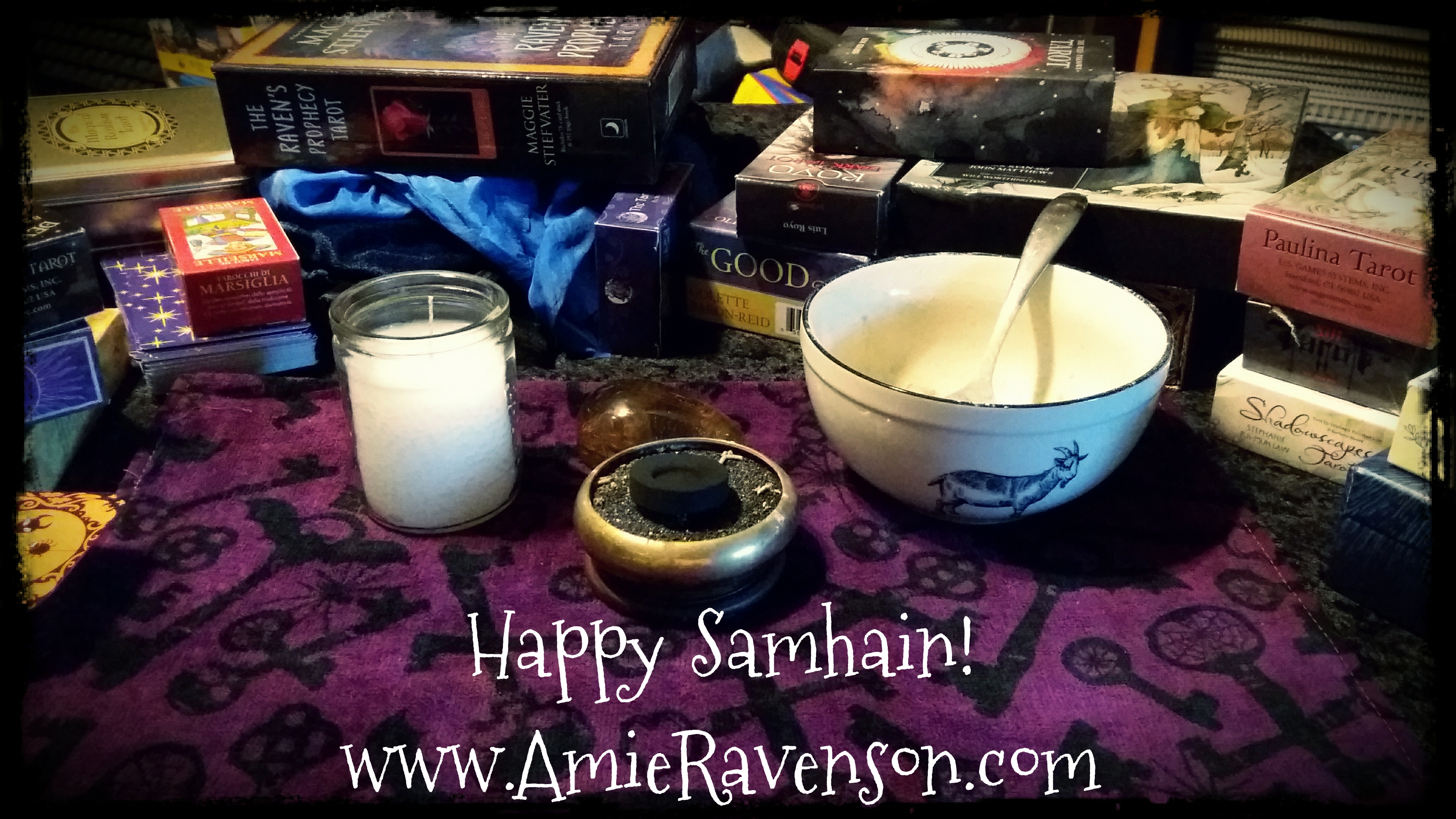 I’ll be using this for a few days leading up to Samhain to cleanse/bless my tarot cards, oracle cards, and other divination tools.