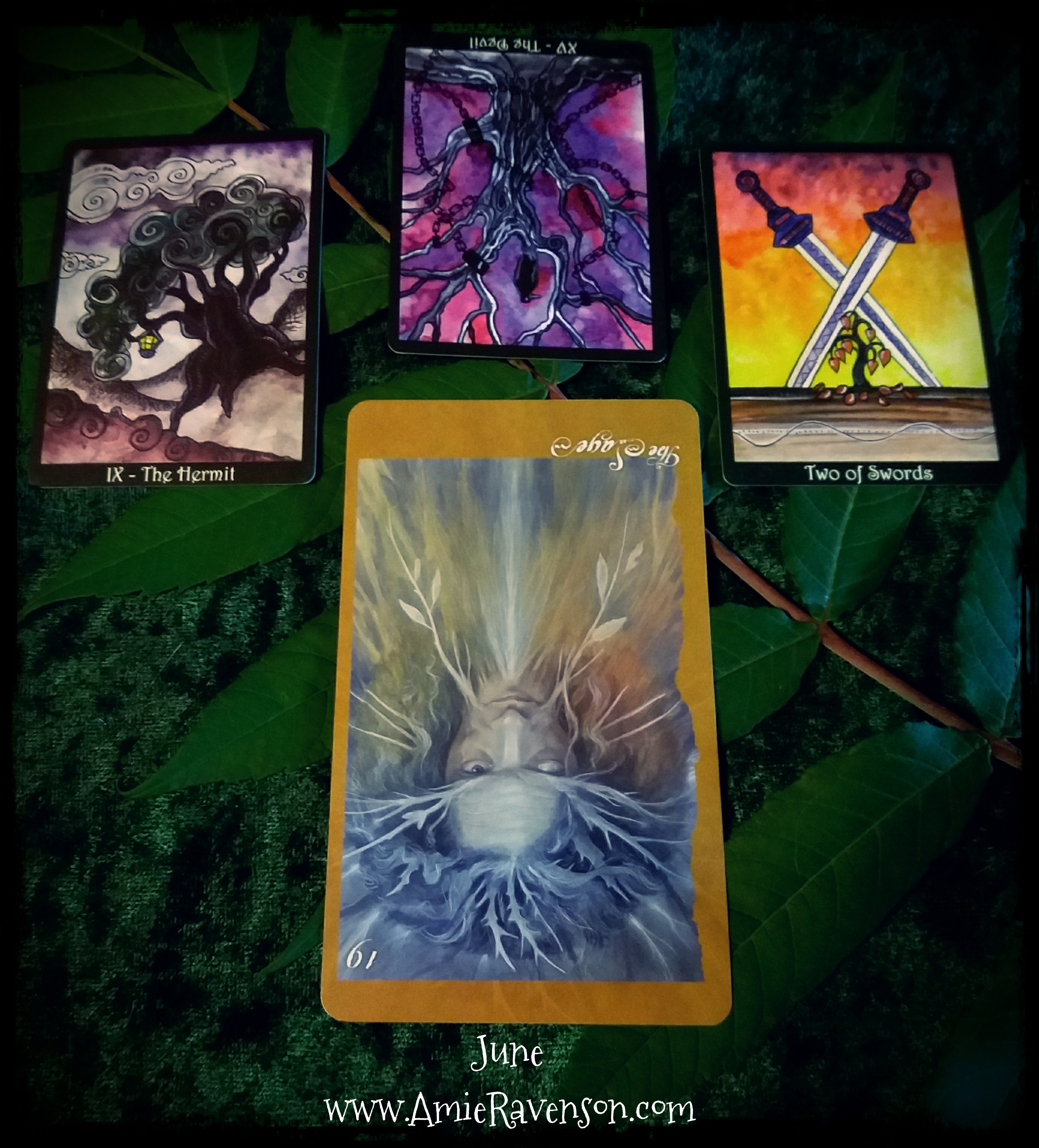First, we have The Hermit. So it looks like June is going to be a month for us to really go within. We have some things we need to work out on a spiritual level, and hiding from ourselves isn’t really going to help us right now. So don’t be afraid to take some solitary time for yourself this month, because it’s needed.
