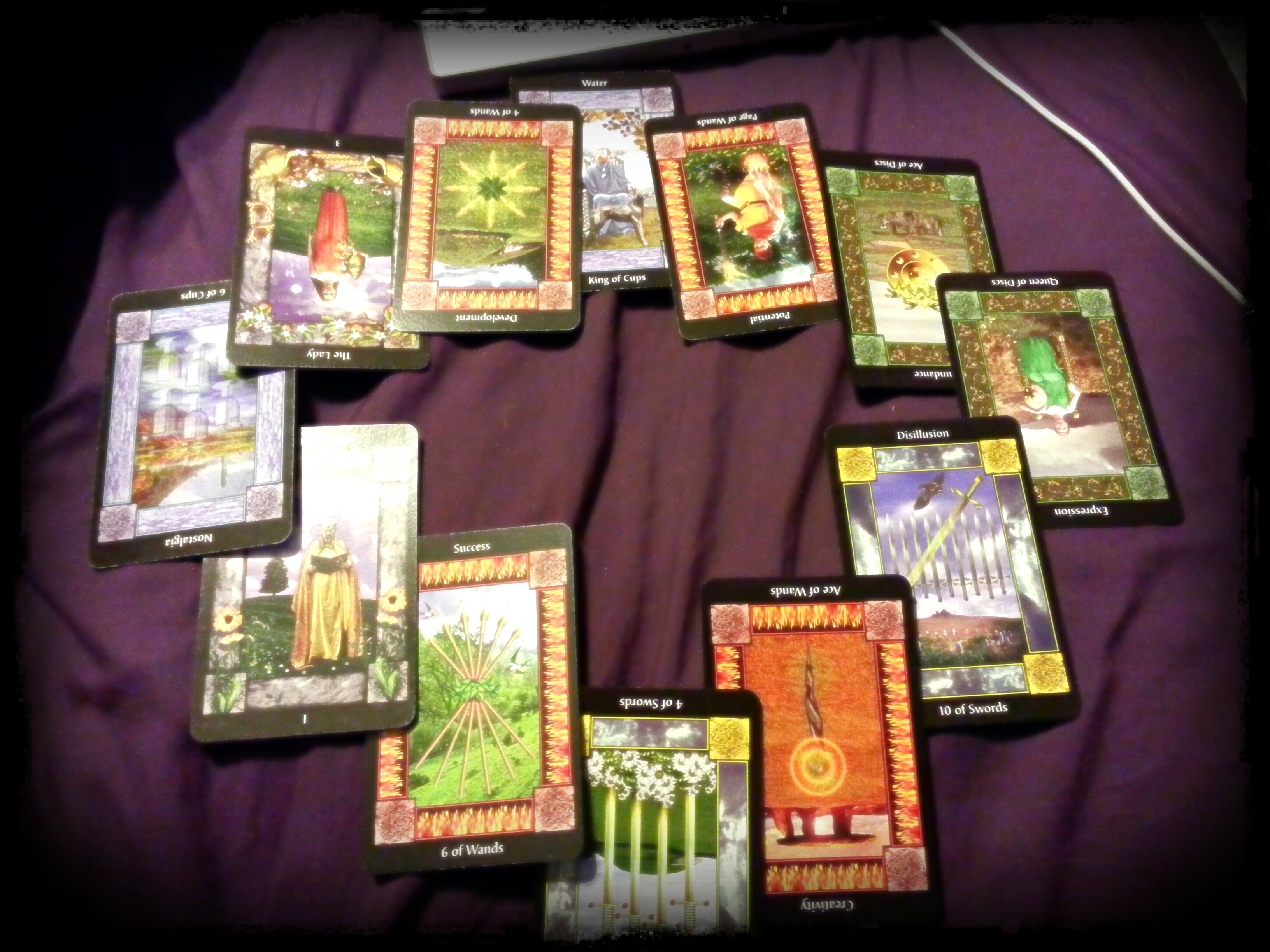 It’s been a while since I’ve done a tarot reading for myself, and so I thought I would do a general reading just asking about the year ahead.  I didn’t focus on work, relationships, money, creativity, health, or any of the other things that occupy my every waking minute, I decided to just let the cards show me what the general focus would be.  To that end, I did a 12 month wheel spread, beginning at the top with January.